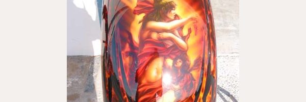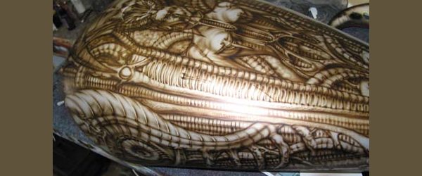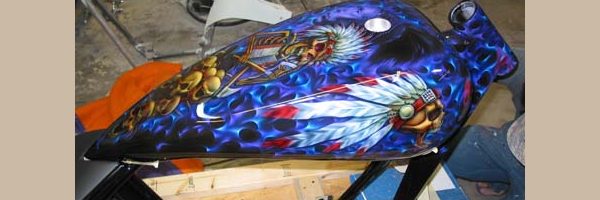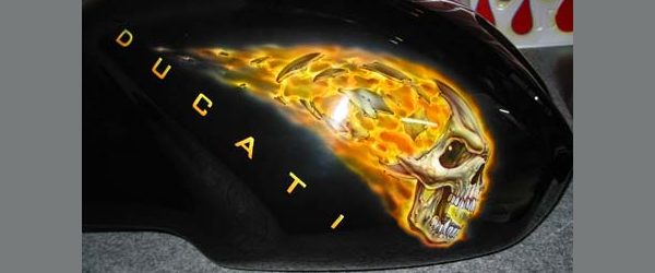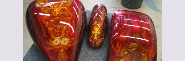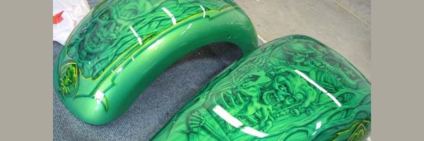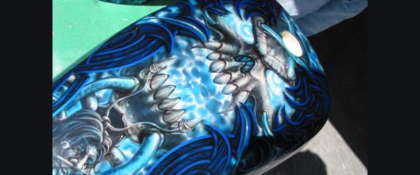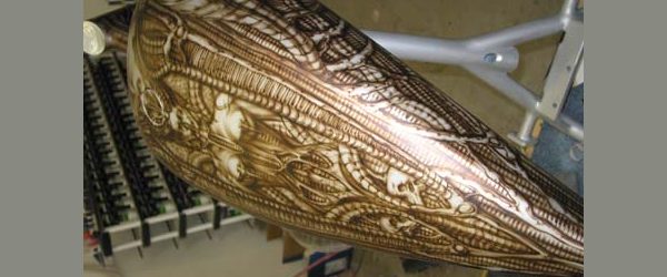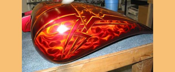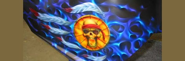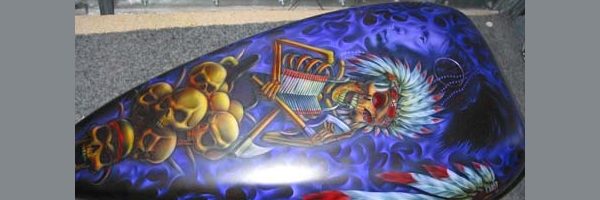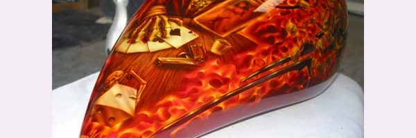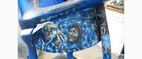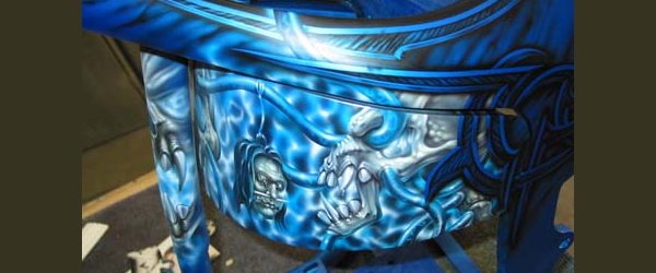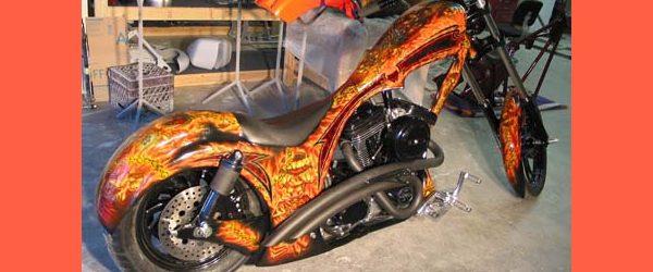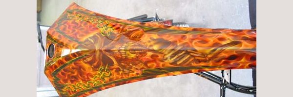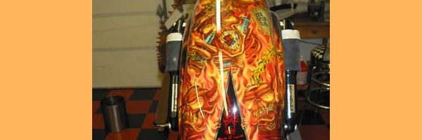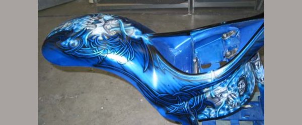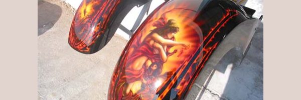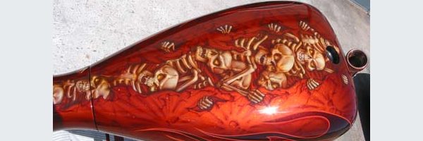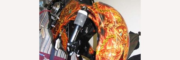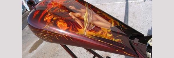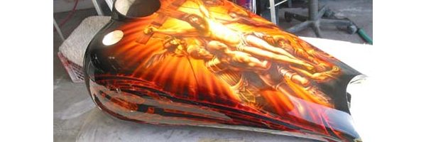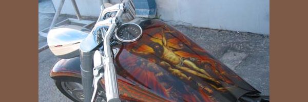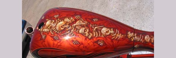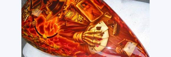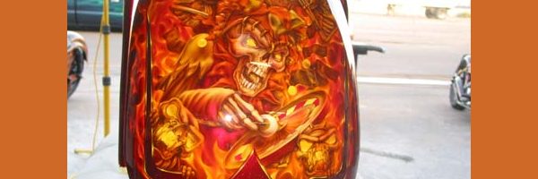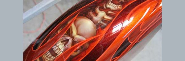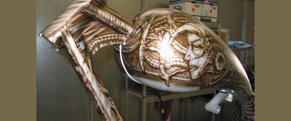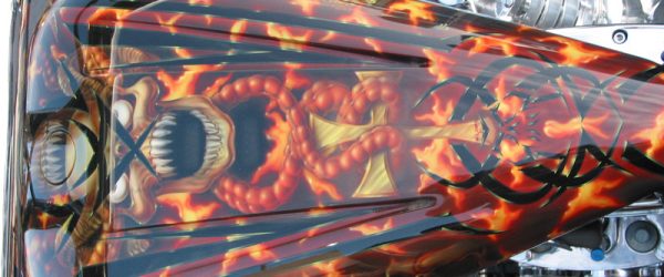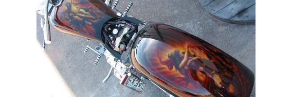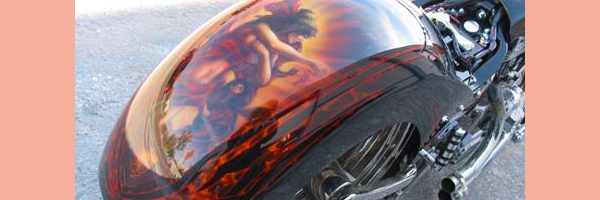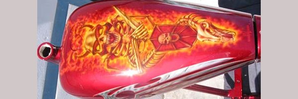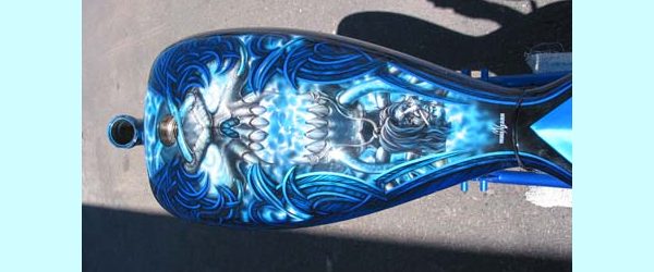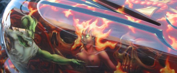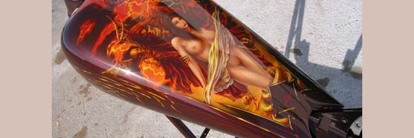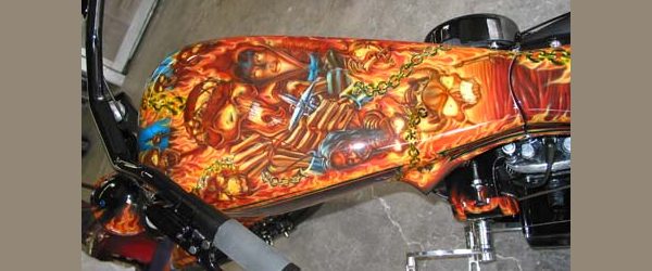 Check out the numerous galleries that contain much of Mike’s professional portfolio. The galleries in the “Airbrush Section” are primarily custom motorcycle and flat commissioned work, often created for album art or for gallery displays.