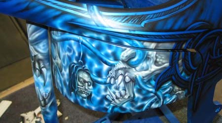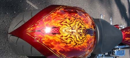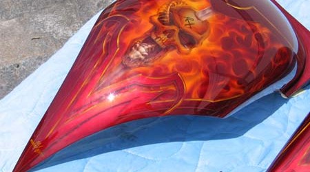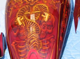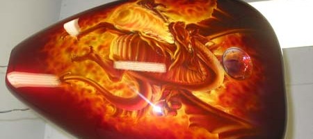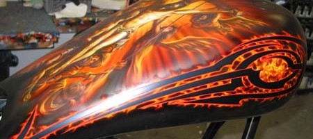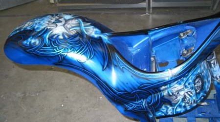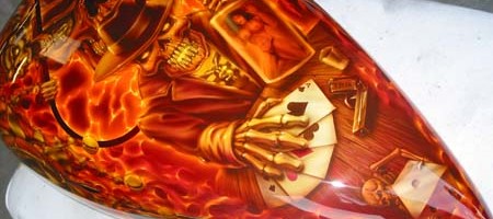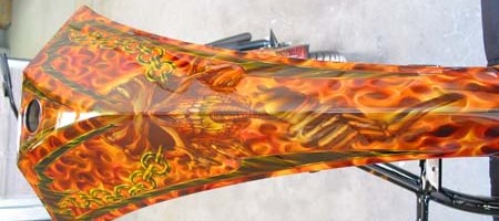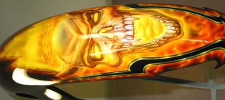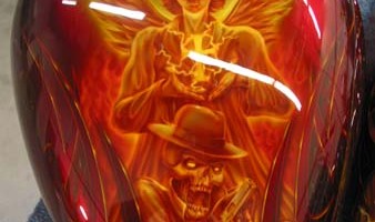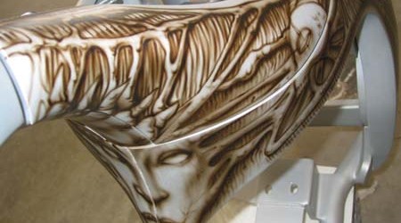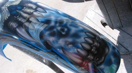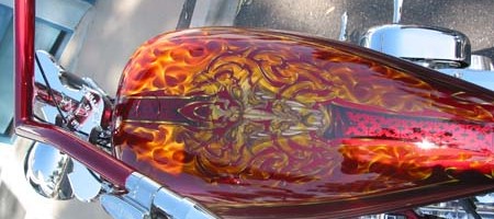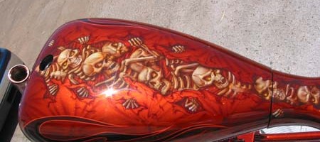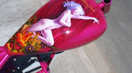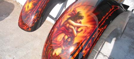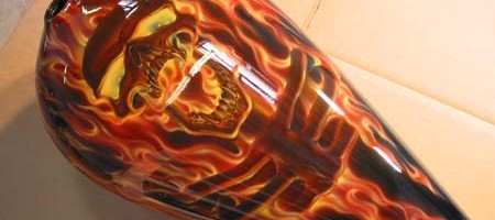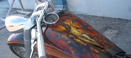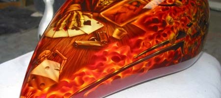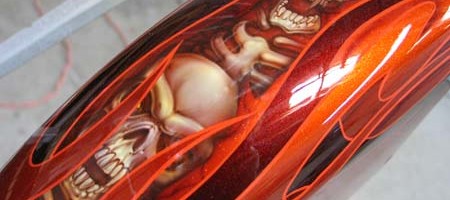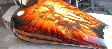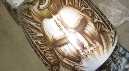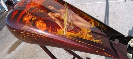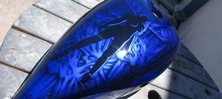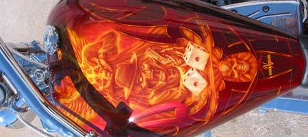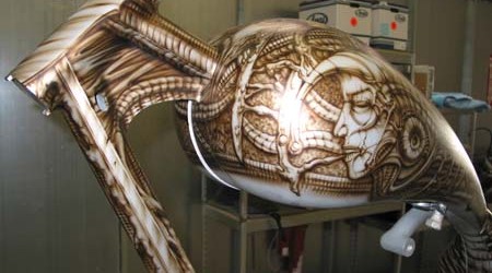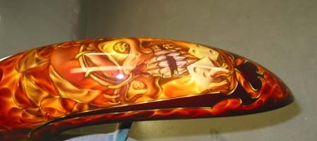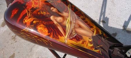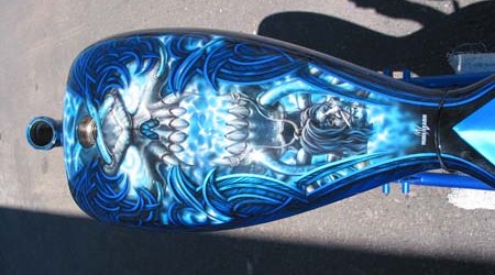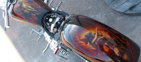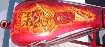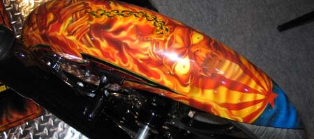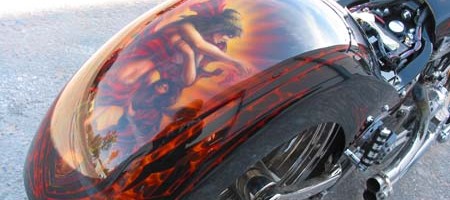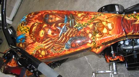 Check out the numerous galleries that contain much of Mike’s professional portfolio. The galleries in the “Airbrush Section” are primarily custom motorcycle and flat commissioned work, often created for album art or for gallery displays.