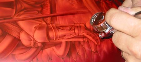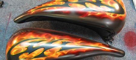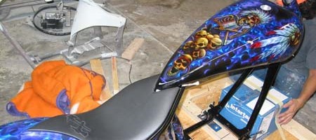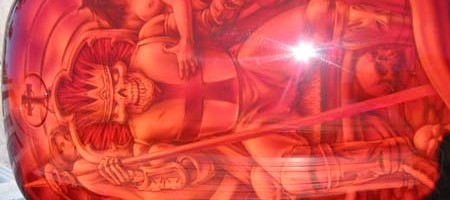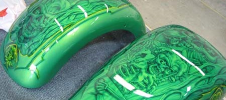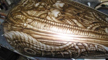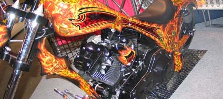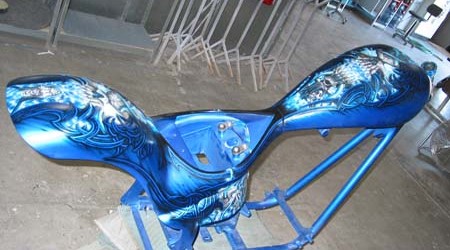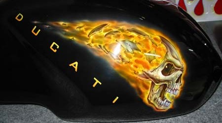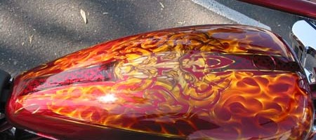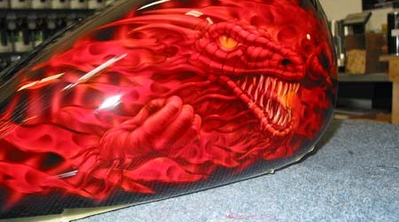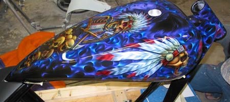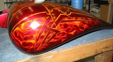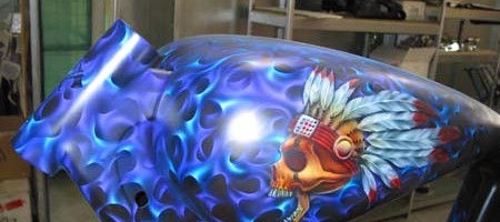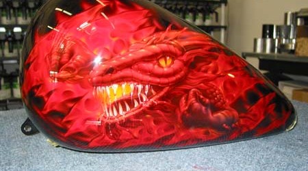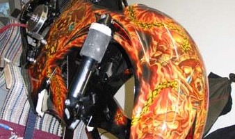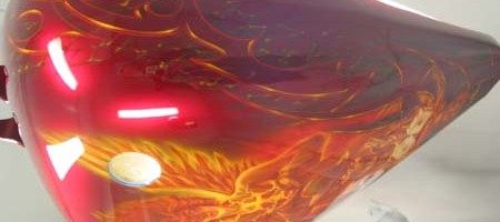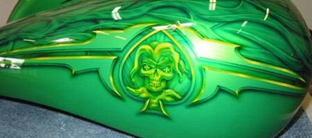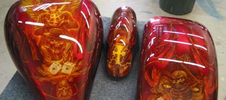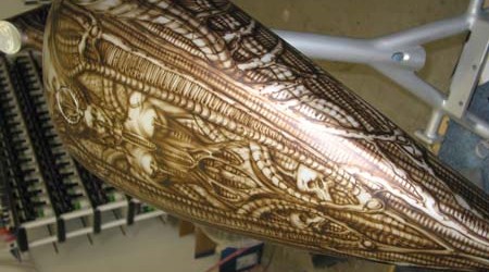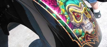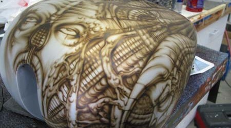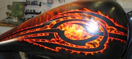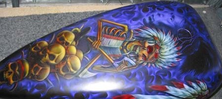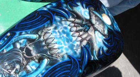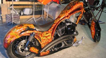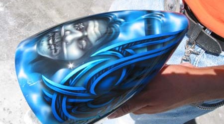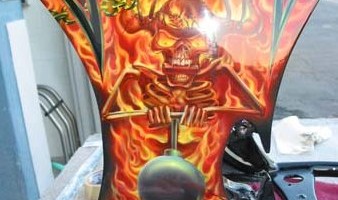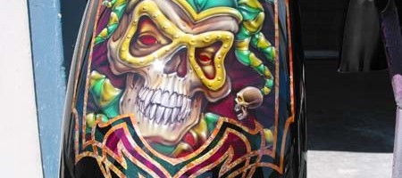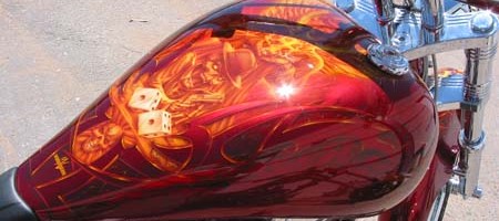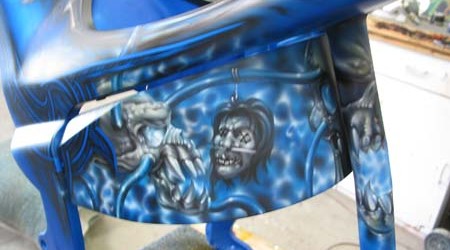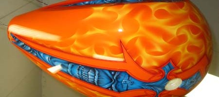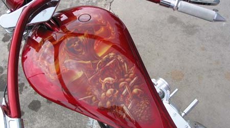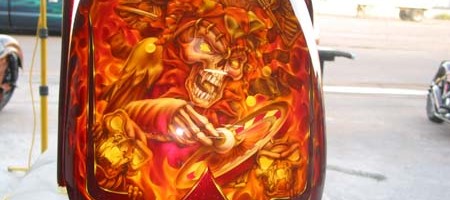 Check out the numerous galleries that contain much of Mike’s professional portfolio. The galleries in the “Airbrush Section” are primarily custom motorcycle and flat commissioned work, often created for album art or for gallery displays.