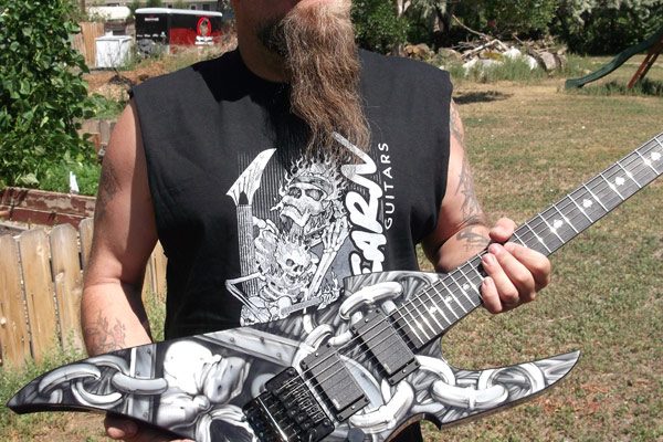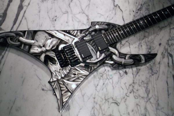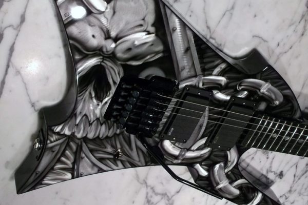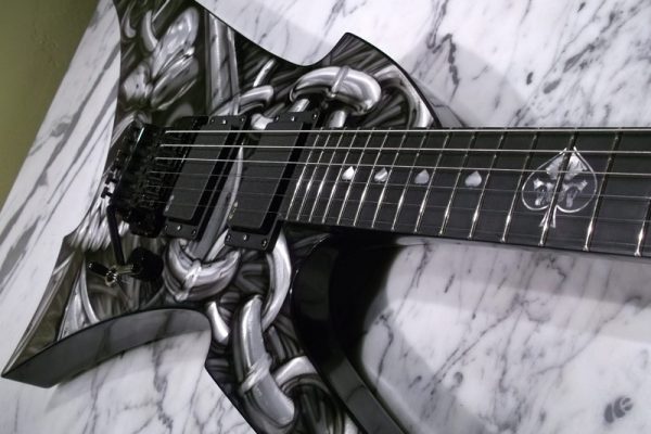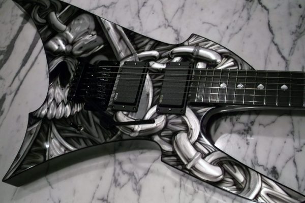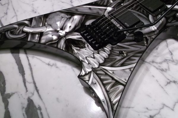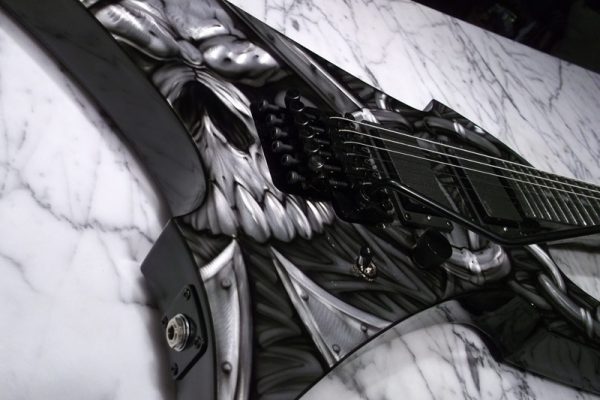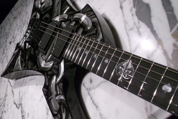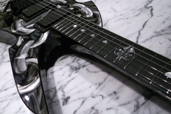 This super-unique Flak Jacket was built for a great, repeat customer who has a large collection of Mike’s work both on Jackson and Learn Guitars.