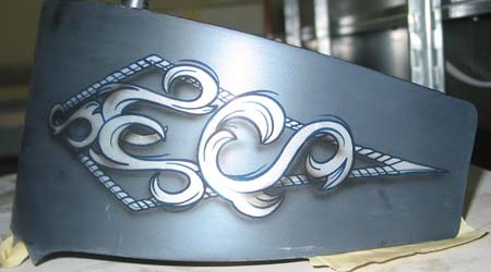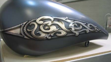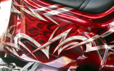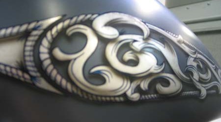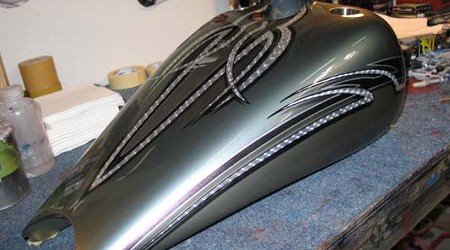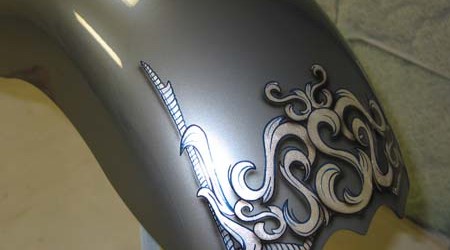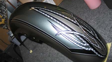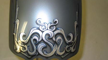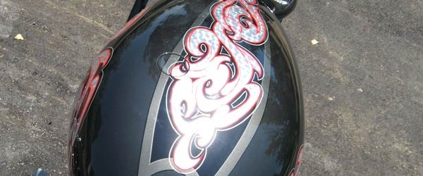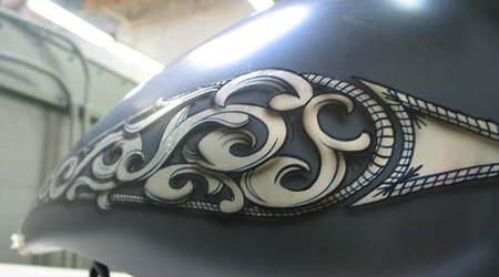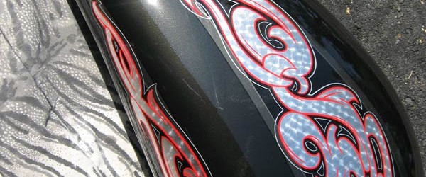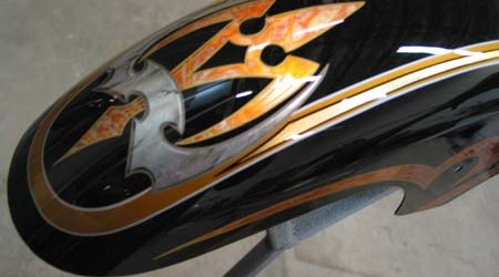 Check out the numerous galleries that contain much of Mike’s professional portfolio. The galleries in the “Graphics Section” are primarily custom motorcycle 2-tone, tribal and pinstripe jobs, however if you like to see clean art design, make sure you browse the Guitar galleries as well – they are loaded with amazing custom graphics.