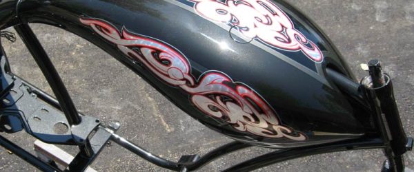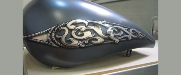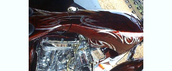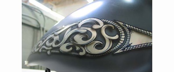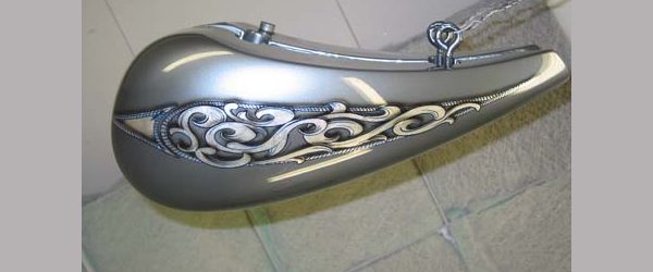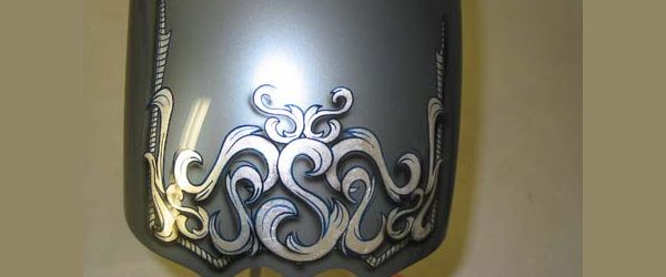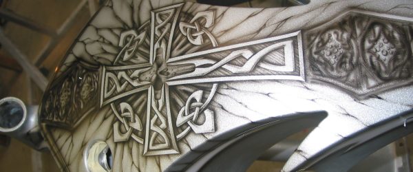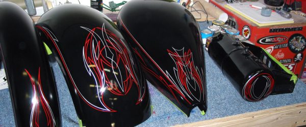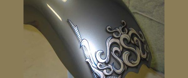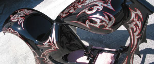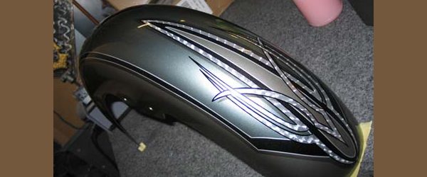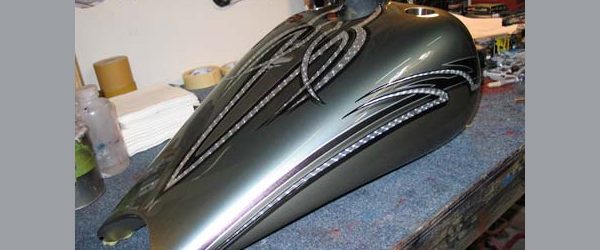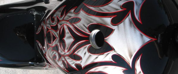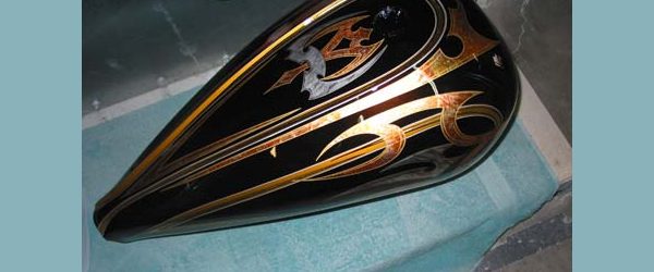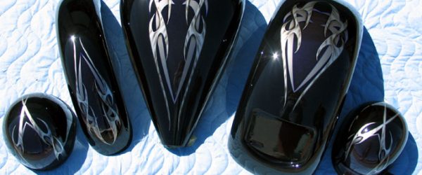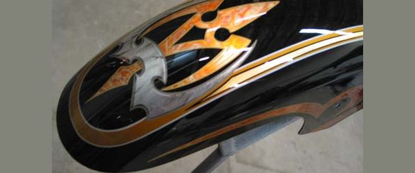 Check out the numerous galleries that contain much of Mike’s professional portfolio. The galleries in the “Graphics Section” are primarily custom motorcycle 2-tone, tribal and pinstripe jobs, however if you like to see clean art design, make sure you browse the Guitar galleries as well – they are loaded with amazing custom graphics.