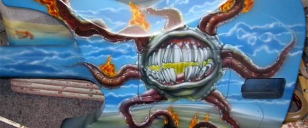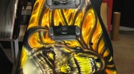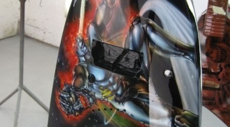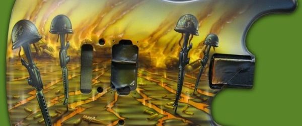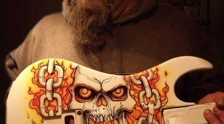 Check out the numerous galleries that contain much of Mike’s professional portfolio. The galleries in the “Guitars Section” contain both guitars that Mike has painted for major builders, clients and his own Custom Spec Built Learn Guitars.