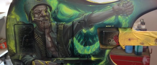 Check out the numerous galleries that contain much of Mike’s professional portfolio. The galleries in the “Guitars Section” contain both guitars that Mike has painted for major builders, clients and his own Custom Spec Built Learn Guitars.