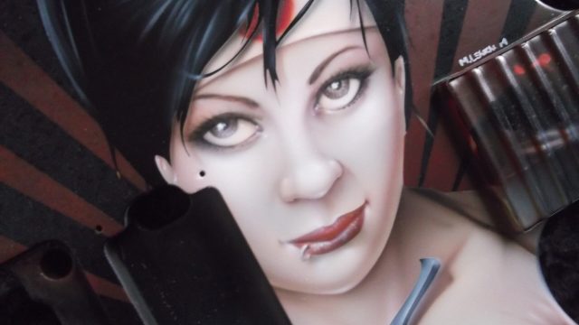 While I am doing a series of six guitars, the idea was to have each one just a little bit different. This allowed customers to have one of a series, but still have a unique piece. To achieve this, I pretty much stuck to the same flesh tones and facial features for the girls, but I mixed it up a bit on backgrounds and color combinations. Throughout this article, you will see shots from all six!