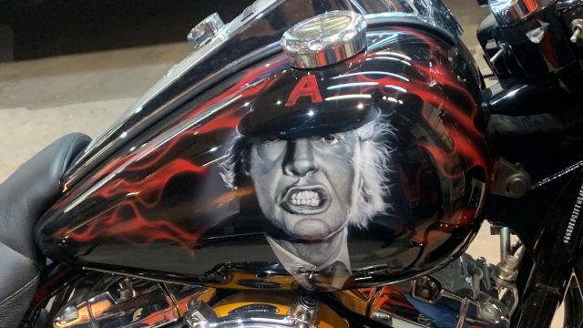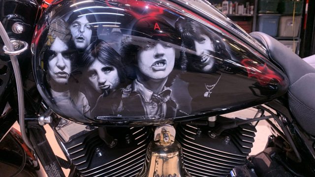 “AC/DC is my all time favorite rock band, being an artist myself, I enjoy the fabrication of steel and aluminum in many forms. I wanted the theme to incorporate one-off, hand fabricated parts that were related to musical instruments used by AC/DC. I had to do some homework and learned even more about the band.