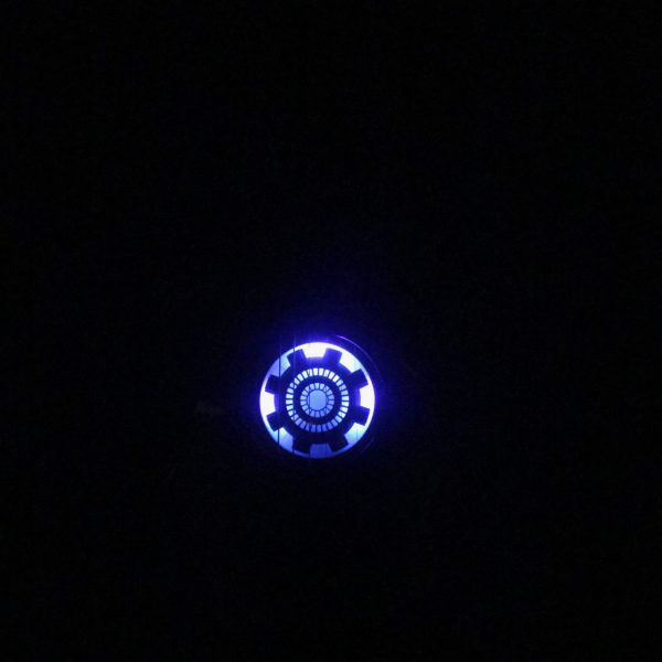 The custom finish is burgundy Kandy and Gold Iron Man graphics with a Marvel collector “heart” piece recessed into the body and wired with LEDs.